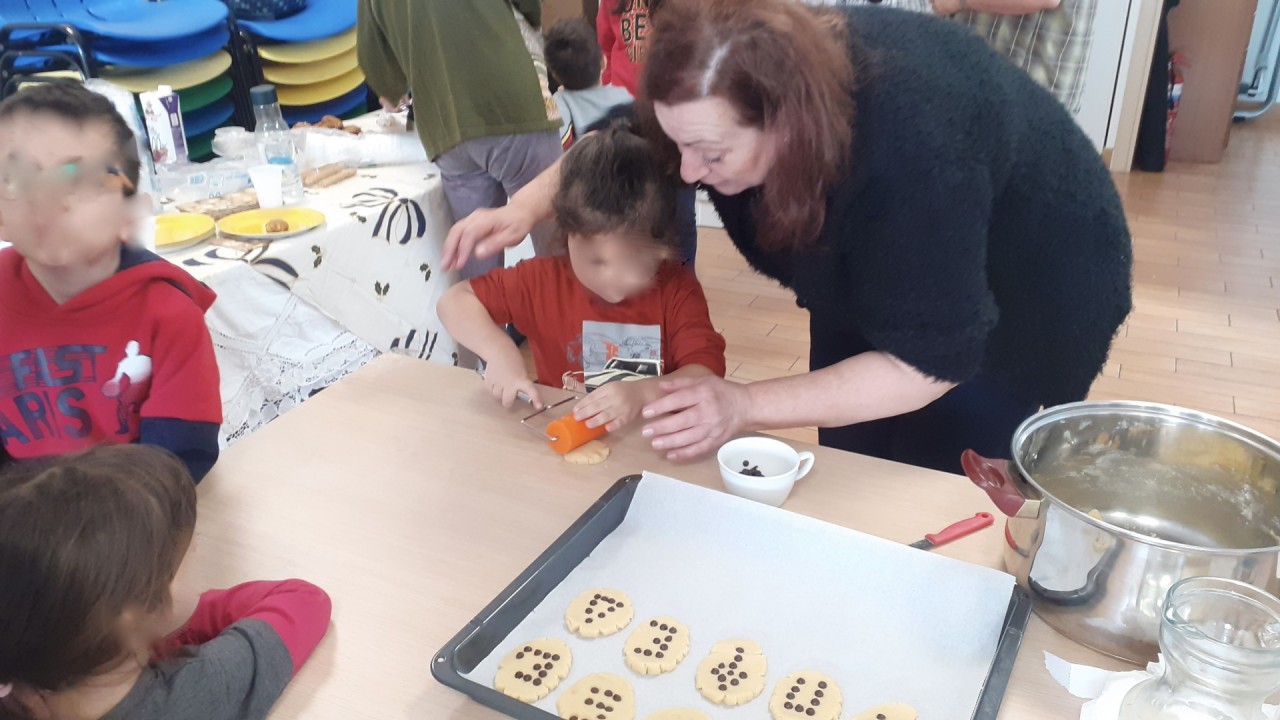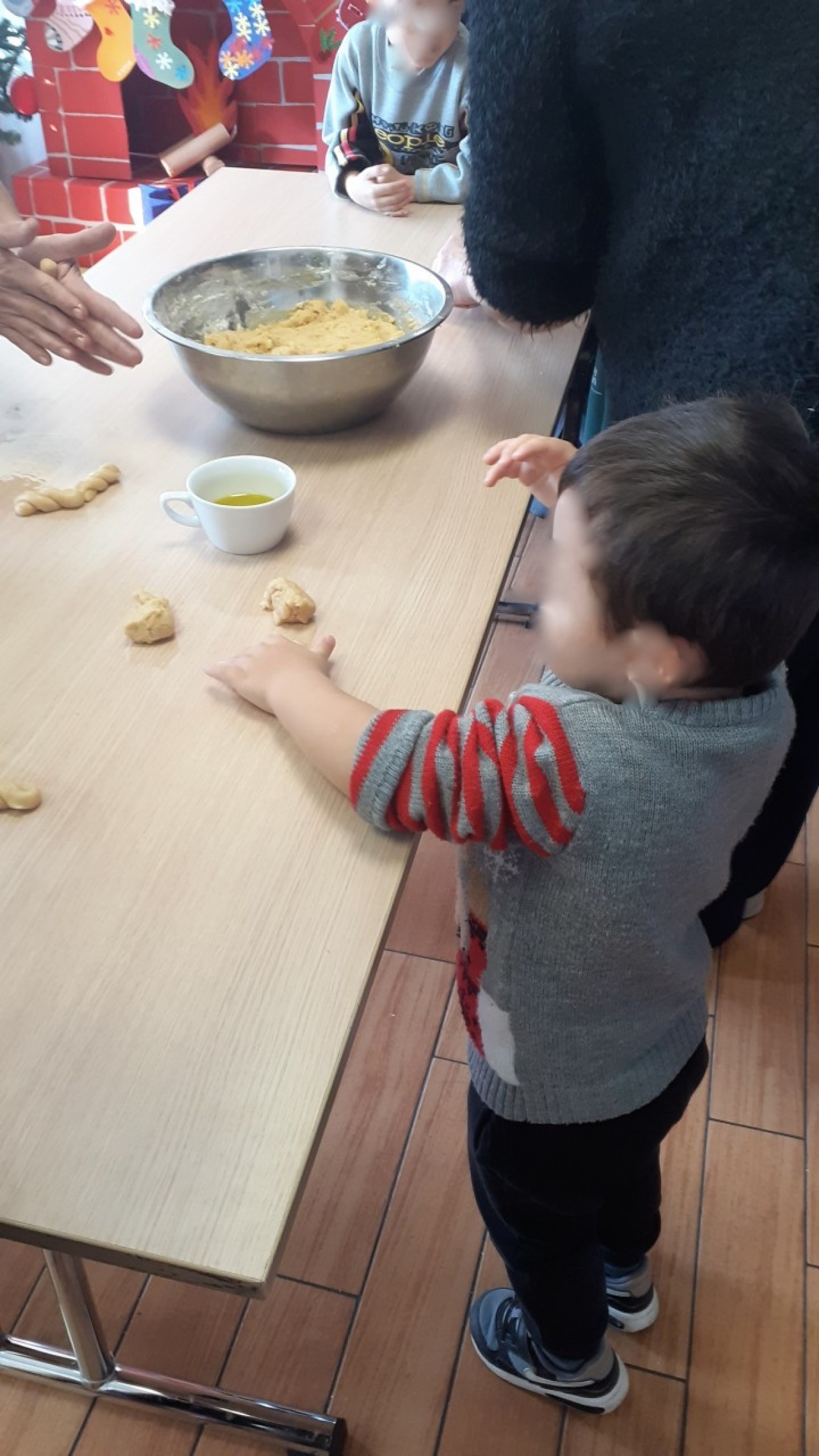 Τα παιδιά της Αγκαλιάς την Τετάρτη στις 28/12 απόλαυσαν μοσχοβολιστά μπισκότα με σοκολατένιο μονόγραμμα και λαχταριστά κουλουράκια. Η κ. Κεδρευή από το Σεντούκι της Γιαγιάς μαζί με εθελόντρια της Αγκαλιάς απασχόλησαν δημιουργικά τα παιδιά και τα παρακίνησαν σε ένα όμορφο ταξίδι γεύσεων και γνώσεων γύρω από τα κουλουράκια.