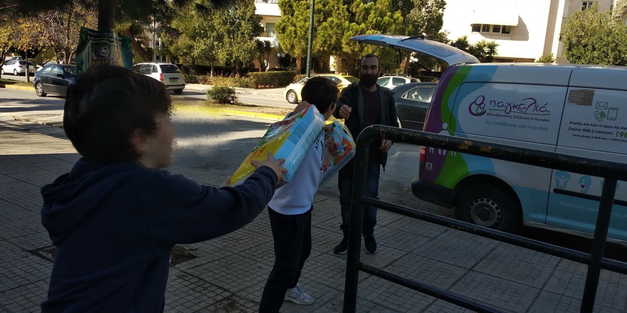 Τα παιδιά μετέφεραν γάλατα και πάνες, που αγοράστηκαν με χρήματα από τη δωροαγορά που πραγματοποίησε το Σχολείο, για να τα παραλάβει εκπρόσωπος του Συλλόγου. Η χαρά της προσφοράς ήταν ζωγραφισμένη στα πρόσωπα τους.