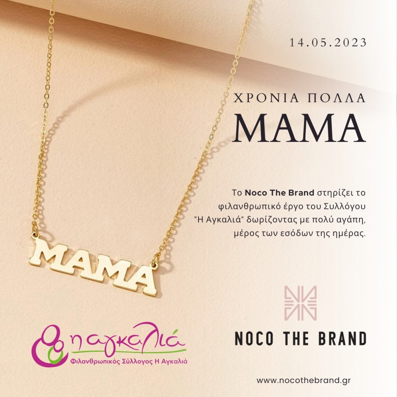 Με αφορμή την Ημέρα της Μητέρας, την Κυριακή 14 Μαΐου 2023 το Noco The Brand στηρίζει το φιλανθρωπικό έργο του Συλλόγου "Η Αγκαλιά" δωρίζοντας με πολύ αγάπη, μέρος των εσόδων της ημέρας. Ενισχύστε την ενέργεια: ΕΔΩ