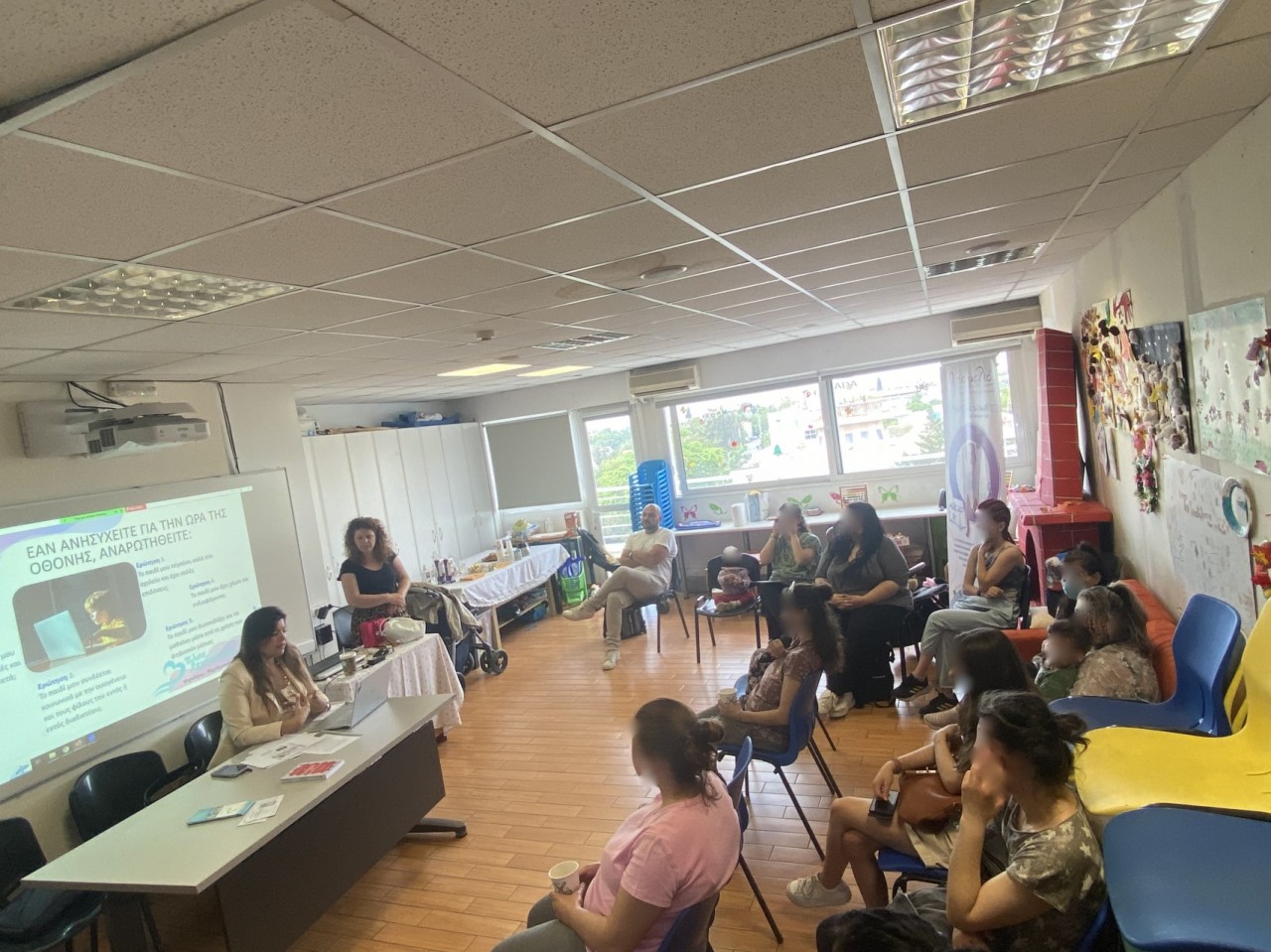 Η δράση πραγματοποιήθηκε στο πλαίσιο των συμβουλευτικών δράσεων για την ενδυνάμωση των ωφελούμενων γονέων που συμμετέχουν στα κοινωνικά Προγράμματα της Αγκαλιάς.