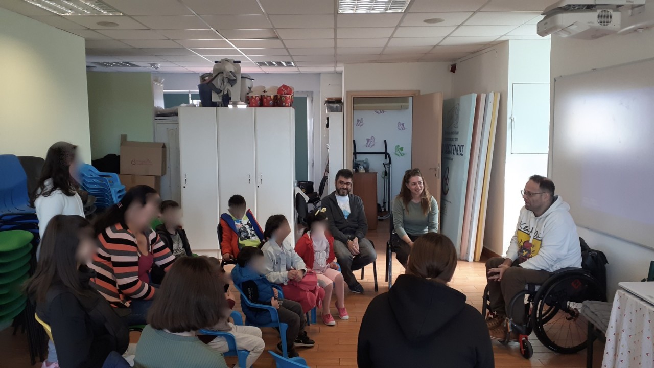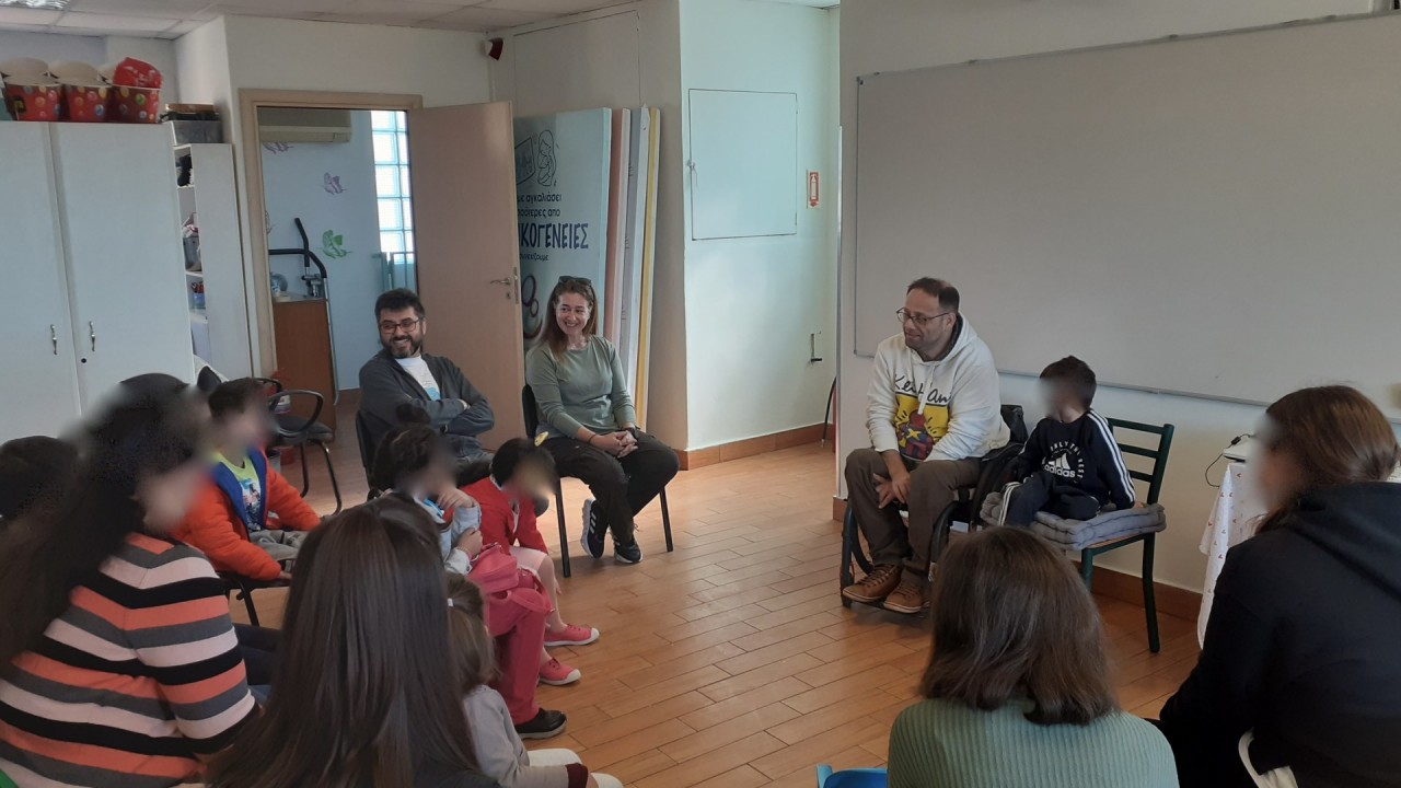 Το Σάββατο στις 24/02 φιλοξενήθηκε στην Αγκαλιά ο κ. Πιτσίνιαγκας Παναγιώτης, από την ΑΜΚΕ ΜΕ ΑΛΛΑ ΜΑΤΙΑ. Σε μια πολύ ζεστή συνάντηση τα παιδιά της Αγκαλιάς είχαν την ευκαιρία να εξοικειωθούν με την αναπηρία και να λύσουν απορίες σχετικά με την καθημερινότητα των ατόμων με αναπηρία, τις δυσκολίες που αντιμετωπίζουν και την κανονικότητα που μπορούν να έχουν στη ζωή τους, όταν όλοι είμαστε προσεχτικοί και αντιμετωπίζουμε τον κάθε άνθρωπο με σεβασμό και ενδιαφέρον.