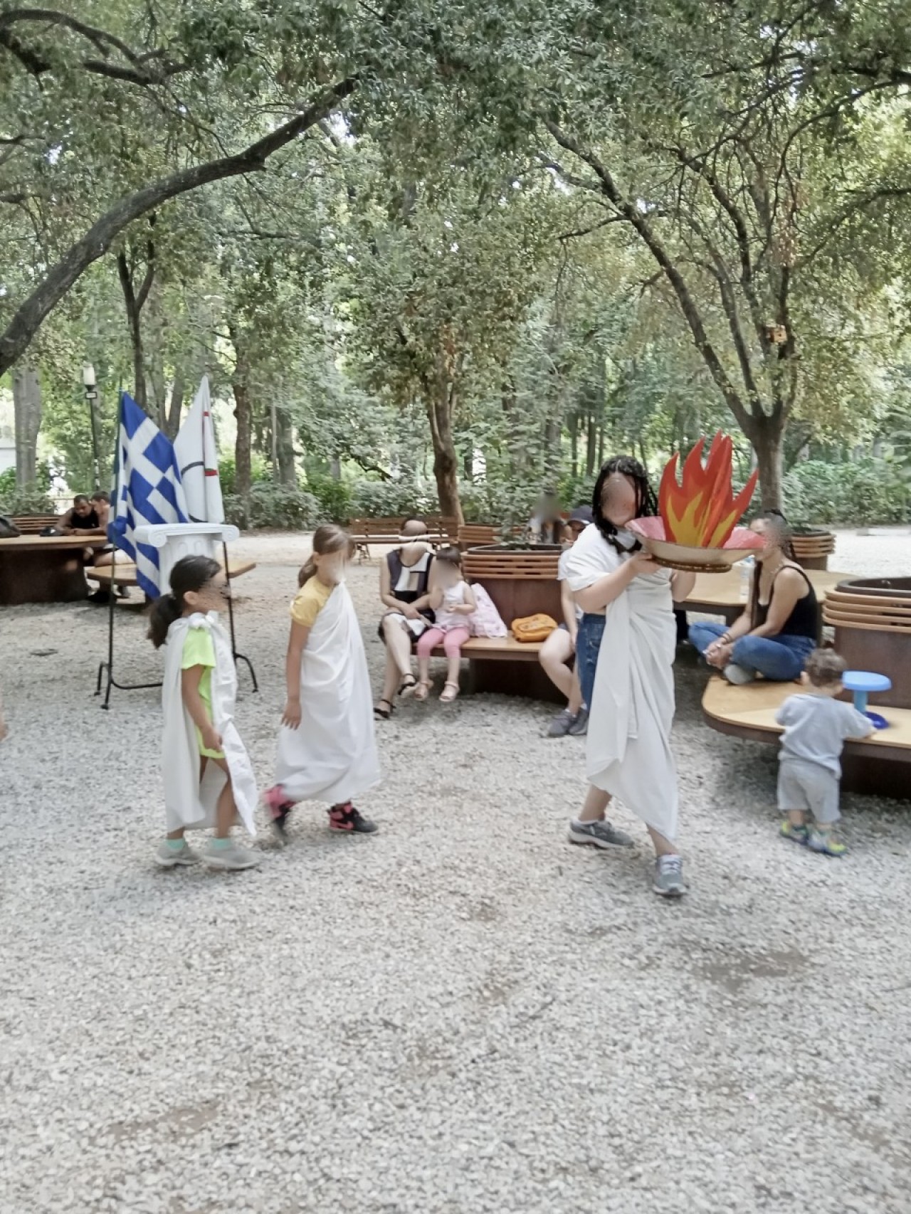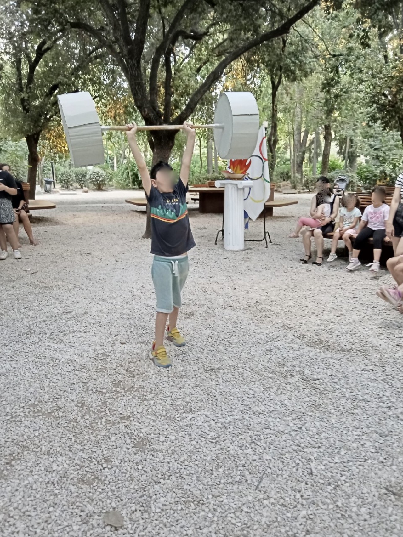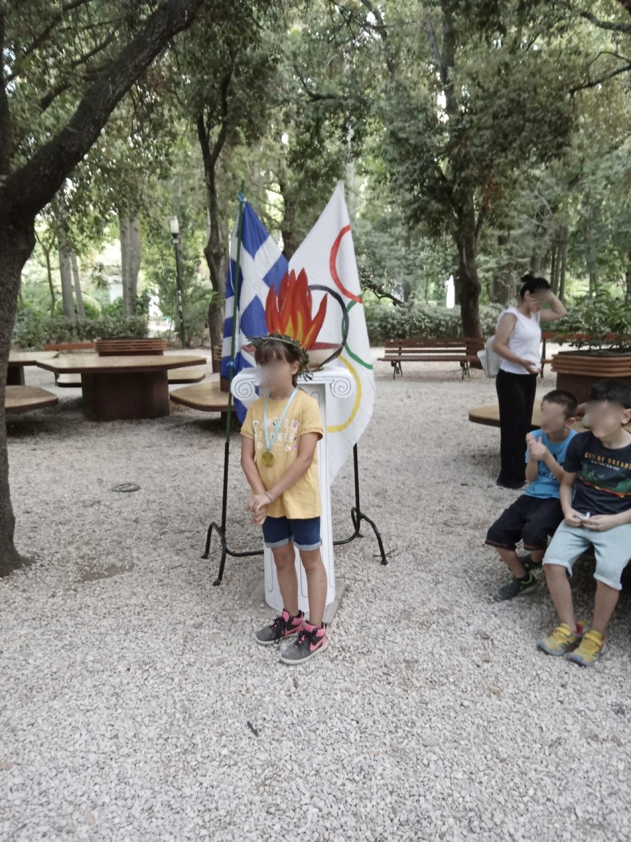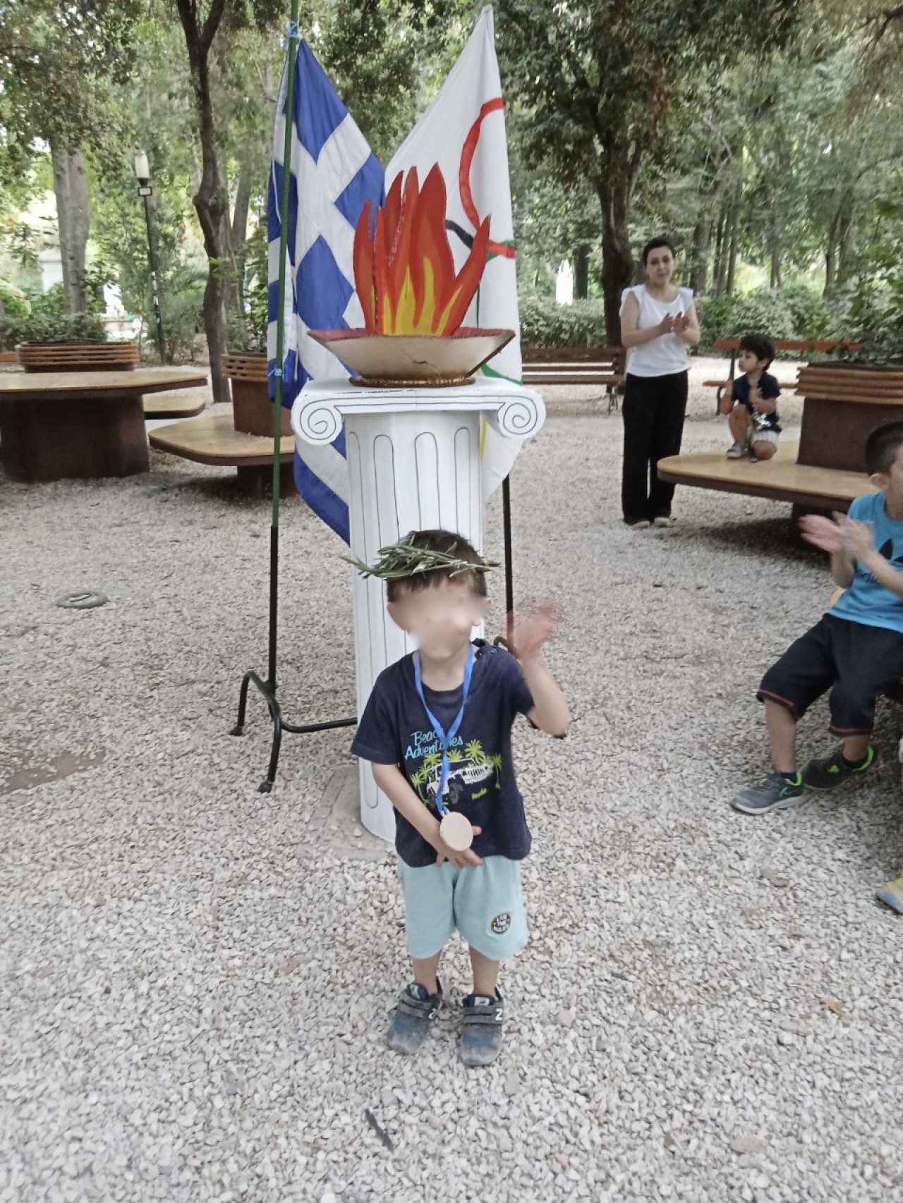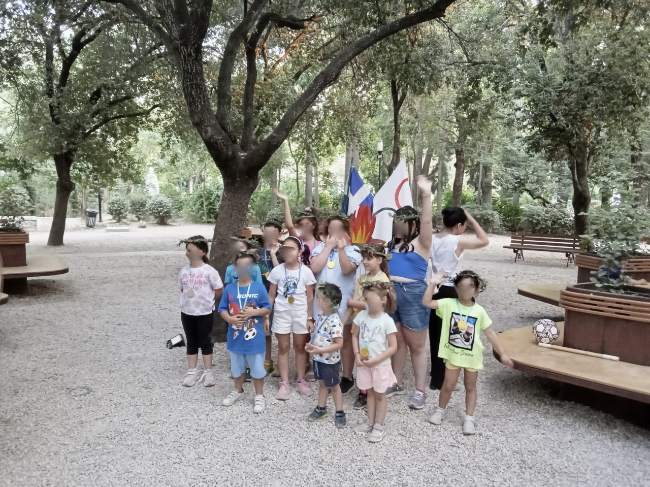 Την Παρασκευή στις 28/6 το π. Άρεως έγινε «Ολυμπιακό Κέντρο». Τα παιδιά της Αγκαλιάς δραματοποίησαν τους Ολυμπιακούς Αγώνες με τη βοήθεια της φαντασίας τους και την εμψύχωση της εθελοντικής ομάδας δημιουργικής απασχόλησης παιδιών της Αγκαλιάς. Το ταξίδι ξεκίνησε στην αρχαία Ολυμπία, όπου οι ιέρειες παρέδωσαν την ιερή φλόγα στους αθλητές, οι οποίοι με λαμπαδηδρομία τη μετέφεραν σε πόλεις όλης της Ελλάδας. Έπειτα το καράβι έφερε τη φλόγα στο Παρίσι, όπου άναψε ο βωμός των αγώνων και έτσι ξεκίνησε η παρέλαση αθλητών από όλο τον κόσμο. Τα αθλήματα ήταν πολλά όπως σκυταλοδρομία, αγώνες ταχύτητας, σφαίρα, ακόντιο, μήκος, βάρη, σκοποβολή κ.ά. Η αθλητική γιορτή τελείωσε με απονομή του χρυσού μεταλλίου συμμετοχής σε όλους και φυσικά στέφθηκαν με κότινο. Απαραίτητο για το τέλος της δράσης δροσερό παγωτάκι για όλους!!