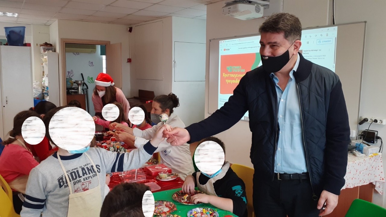 Την Τετάρτη στις 29/12 επισκέφτηκε το Σπίτι της Αγκαλιάς ο Αντιπεριφερειάρχης Π.Ε. Κεντρικού Τομέα Αθηνών, ο κ. Γεώργιος Δημόπουλος. Ξεναγήθηκε στους χώρους της Αγκαλιάς, ενημερώθηκε για το πολυετές κοινωνικό της έργο, ενώ τα παιδιά του Συλλόγου σε ένα γιορτινό κλίμα του έψαλαν τα Κάλαντα. Τέλος μοιράστηκαν δώρα με παιχνίδια στα παιδιά από τον Αντιπεριφερειάρχη.