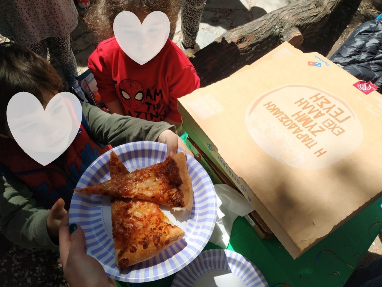 Το Σάββατο στις 02/04/2022, τα παιδιά της Αγκαλιάς πέρασαν ένα υπέροχο πρωινό στο κέντρο της Αθήνας, καλωσορίζοντας την άνοιξη. Τα παιδιά συναντήθηκαν στο Πεδίο του Άρεως στο πάρκο, προκειμένου να ψυχαγωγηθούν δημιουργικά με ομαδικά παιχνίδια κάτω από τα δέντρα και να φτιάξουν δημιουργικές κατασκευές. Η μέρα ήταν ξεχωριστή καθώς ένα από τα παιδιά της Αγκαλιάς είχε τα γενέθλια του και αφού τραγούδησαν στα ελληνικά, τα αγγλικά και τα κινέζικα το τραγούδι των γενεθλίων του, εκείνο έσβησε τα 4 κεράκια του και  γευμάτισε μαζί με τα υπόλοιπα παιδιά τρώγοντας πίτσα Domino’s και φυσικά από ένα γενναιόδωρο κομμάτι τούρτα.